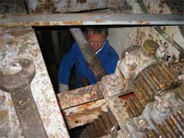 The heavy work started at the turret, removing